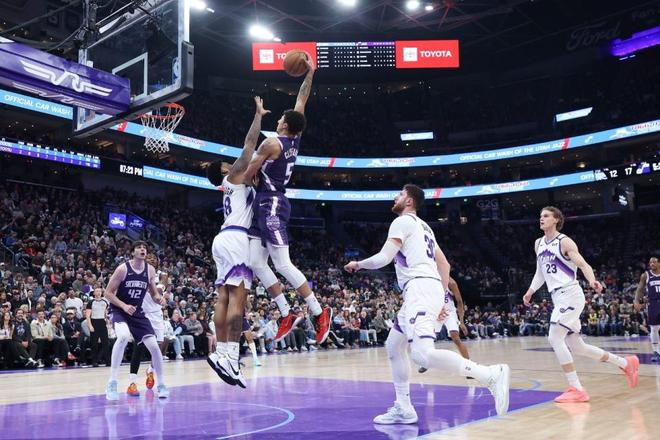 次節比賽,爵士連續兩節單節得分30+,并限制國王連續兩節單節不足25分。爵士繼續用出色的進攻壓制國王,且逐步擴大25+領先優勢,前兩節比賽爵士44中26接近6成準星,其中三分20中10,賈倫8中6得到18分與馬爾卡寧13分。國王僅48中14不足3成準星,其中三分18中4,德羅贊12分與卡特13分,克利福德9中0得到0分。國王單節24-32輸掉8分,上半場結束國王已經44-71落后爵士27分差距。